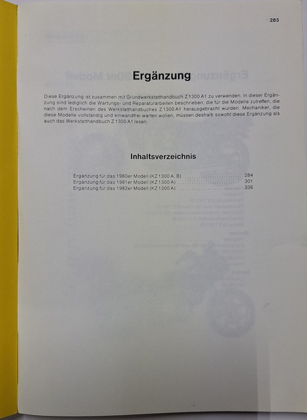 Ergänzung zu dem Werkstatthandbuch Z 1300 A1