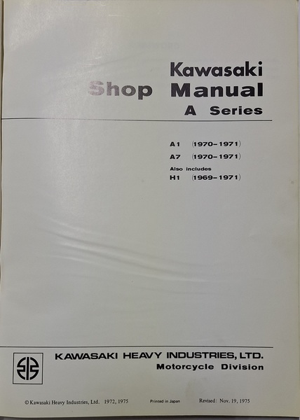 Kawasaki A Series A1 1970-1971, A7 1970-197Shop Manual